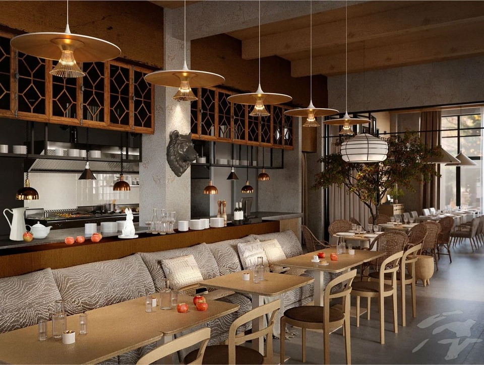• Эстетика загородного отдыха. Наш светлый интерьер в стиле загородного дома создает атмосферу теплоты и искренности. Это идеальная локация для семейного праздника в ресторане или душевной встречи, где можно расслабиться и почувствовать себя как дома.