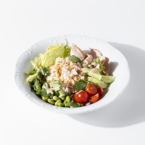 Состав: Салат айсберг, шпинат, филе индейки сувид, яйцо перепелинное, помидоры черри, сыр ...