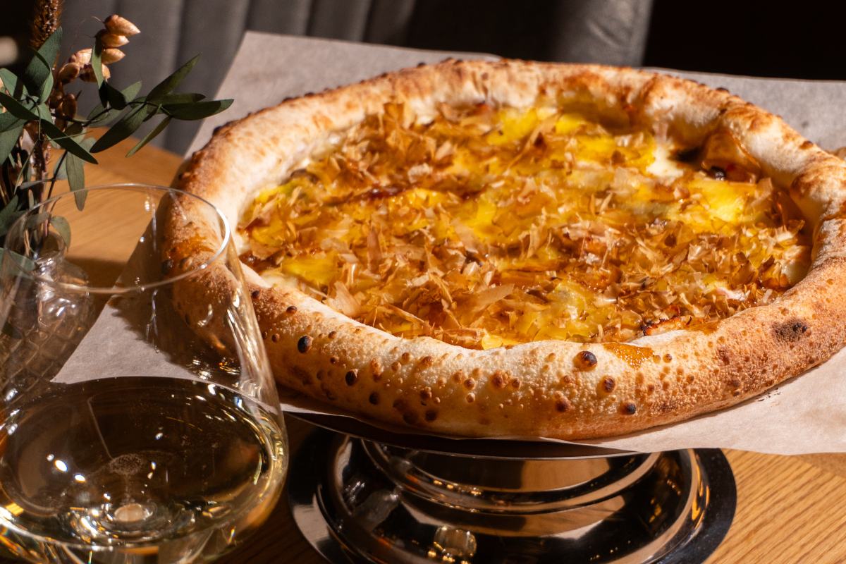 • пицца с ананасом и пастрами из индейки;